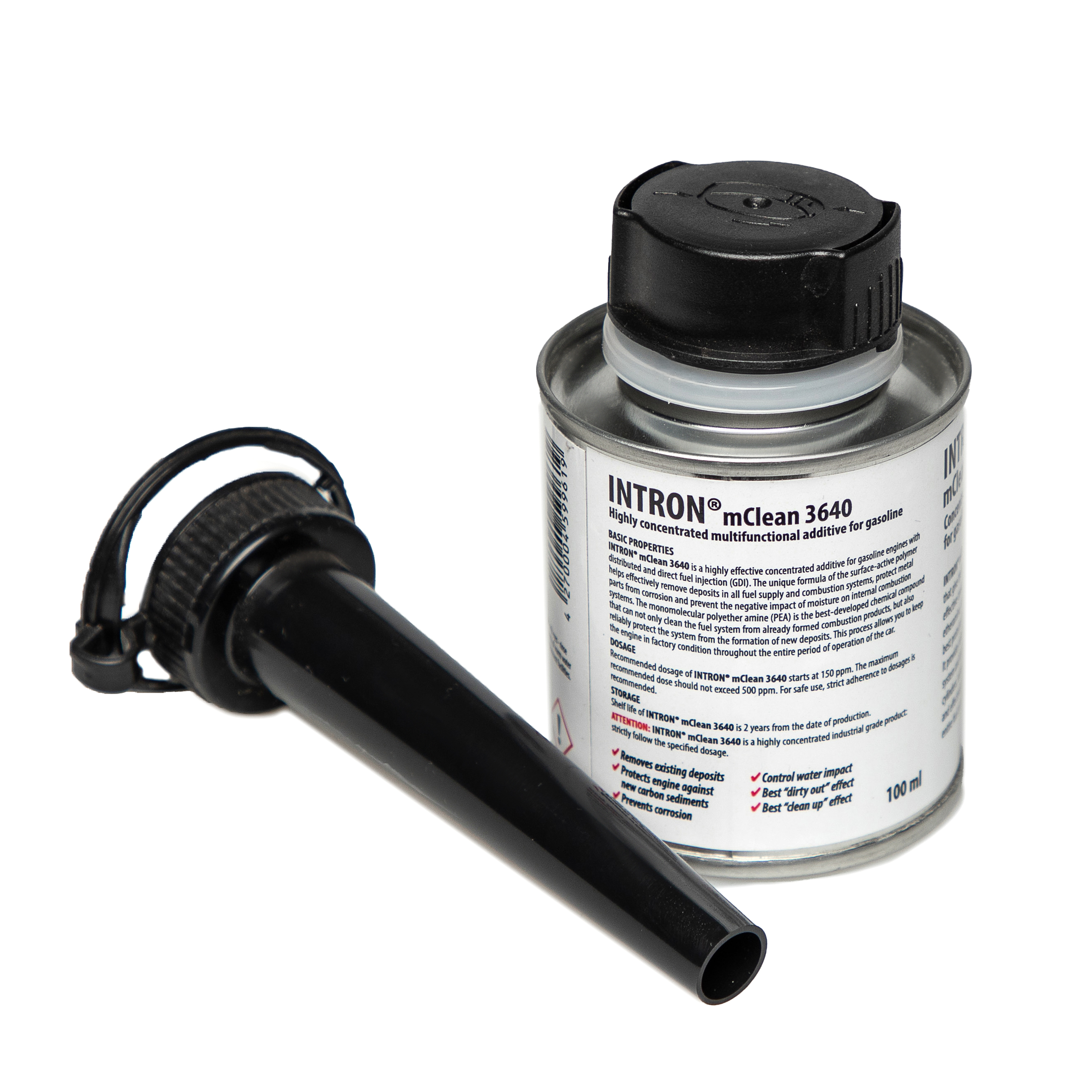 Recommended dosage rate of INTRON® mClean 3640 starts from 150 to 500 ppm. Best cleaning effect reached depends on base fuel quality. Protection against moisture influence in ethanol mixtures reached by 300-350 ppm.