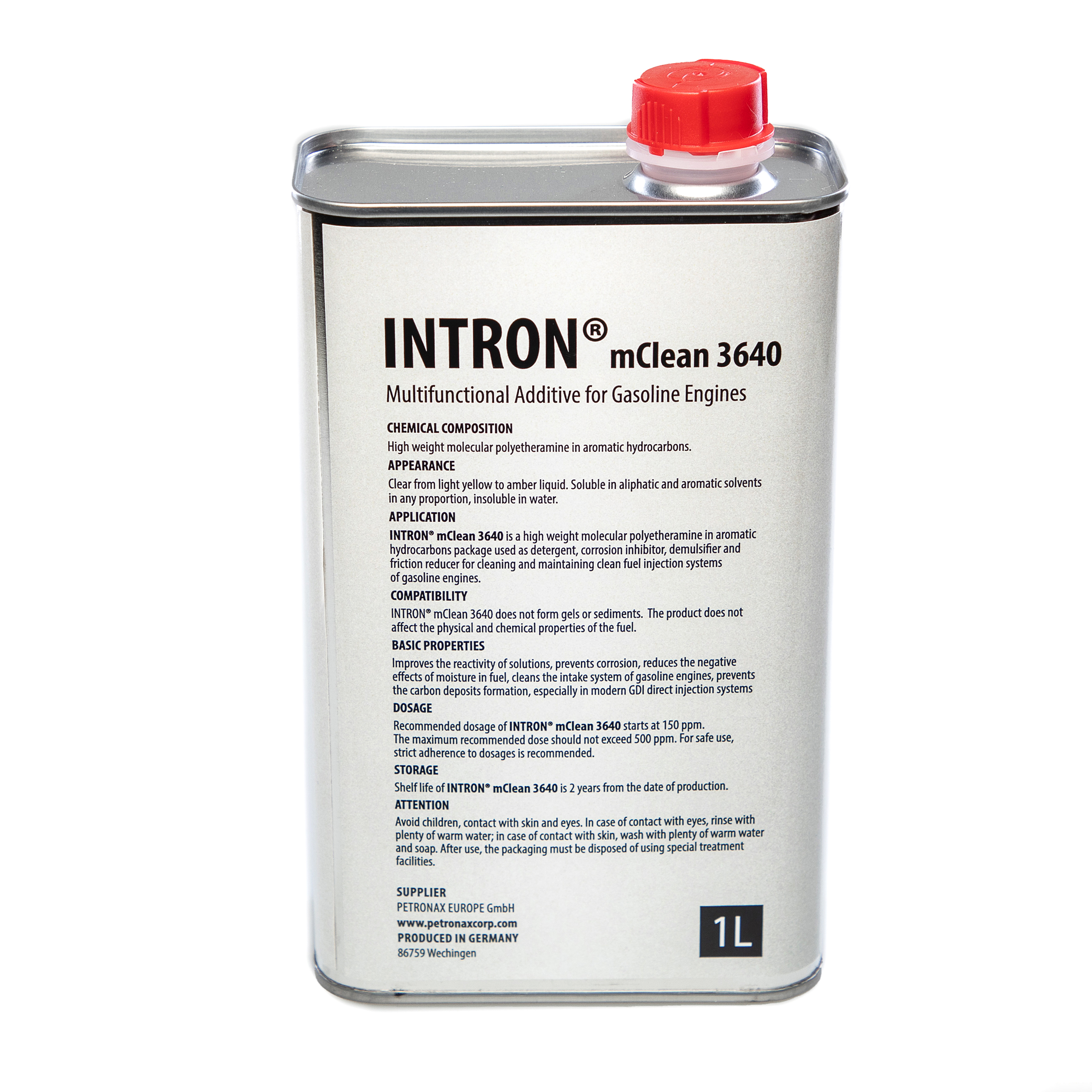 Recommended dosage rate of INTRON® mClean 3640 starts from 150 to 500 ppm. Best cleaning effect reached depends on base fuel quality. Protection against moisture influence in ethanol mixtures reached by 300-350 ppm.